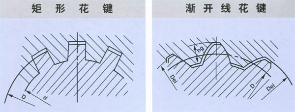 | 回轉(zhuǎn)直徑 φK | 矩形花鍵尺寸 齒數(shù)-大徑×小徑×寬度 | 外花鍵 | 內(nèi)花鍵 | ||||||||